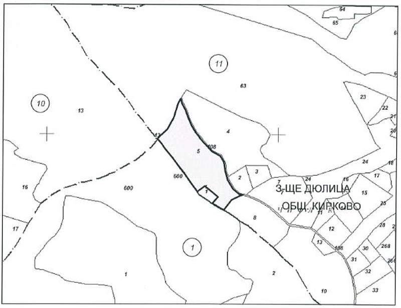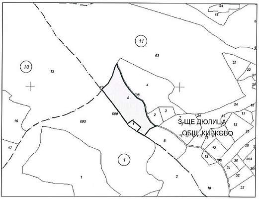 І имот: Имот №011005 /нула единадесет хиляди и пет/, с площ 15110 кв.м. /петдесет хиляди сто и десет кв.м./, с начин на трайно ползване "пасище с храсти", девета категория, в местността "Чифлик", землището на с.Дюлица, ЕКАТТЕ 24743 /двадесет и четири хиляди седемстотин четиридесет и три/, община Кирково, област Кърджали, при граници - имоти с номера: имот №011001, имот №011008, имот №011108, и имот №011063; НАЧАЛНАТА ЦЕНА, ОТ КОЯТО ЩЕ ЗАПОЧНЕ НАДДАВАНЕТО, Е В РАЗМЕР НА:12 359,34/ДВАНАДЕСЕТ ХИЛЯДИ ТРИСТА ПЕТДЕСЕТ И ДЕВЕТ ЕВРО И ТРИДЕСЕТ И ЧЕТИРИ ЦЕНТА/ ЕВРО