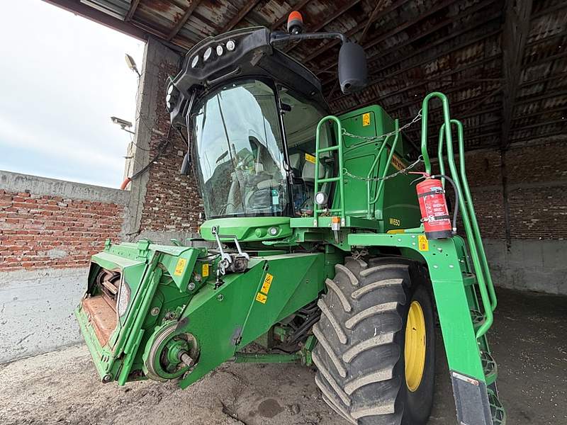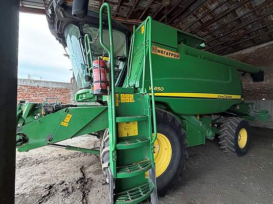 2. Комбайн JOHN DEERE W650, A08567, 1Z0W650ALFL095706С НАЧАЛНА ТРЪЖНА ЦЕНА В РАЗМЕР НА66300.00 евро с ДДС (шестдесет и шест хиляди и триста евро), от които 11 050.00 евро ДДСКомбайн John Deere W650 (инв. № А08567, 1Z0W650ALFL095706) - John Deere W650 е зърнокомбайн от W-серията с шест ходови апарата, произведен около 2008–2013 година. Той е предназначен за жътва на пшеница, ечемик, ръж и други зърнени култури, като осигурява добра производителност и ниски загуби на зърно. Комбайнът е оборудван с мощен 6-цилиндров двигател John Deere с 302–343 к.с. и голям зърнен бункер с вместимост 9000–11 000 литра. Добре поддържан зелен комбайн с просторна кабина и голям бункер. Състоянието е приемливо за машината на тази възраст – няма видими големи повреди, но се нуждае от проверка на ходовата част и гумите. Машината е подходяща за средни и големи площи и често се продава заедно с хедер. Комбайнът остава популярен заради надеждността и лесната поддръжка на марката John Deere.