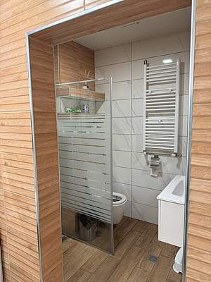 АПАРТАМЕНТ № 21, на бул. "Ришки проход" № 24, на шести /пети жилищен/ етаж от масивна шестетажна жилищна сграда с магазини, състоящ се от антре, две спални, дневна с кухня, кабинет, баня с тоалетна, склад и асаньорно, представляващ самостоятелен обект в сграда с идентификатор 83510.671.349.1.24, по кадастралната карта и кадастралните регистри на град Шумен, общ. Шумен, обл. Шумен, одобрени със Заповед № РД-18-52/25.11.2005г. на ИД на АГКК, със застроена площ от 159,50 квадратни метра, с административен адрес на имота: град Шумен, п.к. 9700, булевард "Ришки проход" № 24, етаж 6, апартамент 24, самостоятелният обект се намира в сграда № 1, разположена в поземлен имот с идентификатор 83510.671.349, предназначение: жилище, апартамент; брой нива на обекта: 1, при съседни самостоятелни обекти в сградата: на същия етаж: няма, под обекта: 83510.671.349.1.23, 83510.671.349.1.21, 83510.671.349.1.20, 83510.671.349.1.19, над обекта: няма, заедно с 0,103205 идеални части от общите части на сградата, на които съответстват 20,57 квадратни метра, ведно с 58/638 идеални части от поземлен имот с идентификатор 83510.671.349, по кадастралната карта и кадастралните регистри, одобрени със Заповед № РД-18-52/25.11.2005г. на ИД на АГКК, последно изменение със заповед № 18-358-14.01.2016г., с административен адрес на имота: град Шумен, булевард "Ришки проход" № 24, целия с площ от 638 кв.м., трайно предназначение на територията – урбанизирана, начин на трайно ползване: комплексно застрояване, при съседи: 83510.671.128, 83510.671.98, 83510.671.90, съответстващ на УПИ VIII, кв. 331А по ПУП на град Шумен, с право на разпределено ползване на открито паркомясто, с площ 17 кв.м., разположено на югоизточната граница на поземления имот и успоредно на сградата.По констатации на място: Апартаментът е в много добро състояние и се използва по предназначение. Подът е с ламинат и паркет, стени и тавани – интериорна боя. Санитарното помещение е с теракот и фаянс. Трапезарията е в много добро състояние, като подът е с ламинат, стени и таван с интериорна боя и частично окачен таван с вградено осветление. Остъклението в жилището е с ПВЦ дограма, като само на запад е с алуминиева дограма. Третата стая/ спалня е в процес на ремонт. Отоплението и охлаждането на жилището е на ток, като има изградена система с термопомпа. Към момента на огледа в северната част на жилището се извършват ремонтни дейности, като има второ санитарно помещение към спалнята.