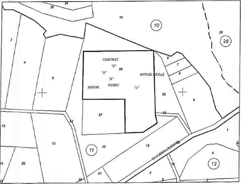 ПОЗЕМЛЕН ИМОТ №011038, находящ се в землището на с.Бяла Поляна, общ.Кърджали, ЕКАТТЕ 07658, целият с площ 9,006дка, с начин на трайно ползване: Овцеферма, при граници: поземлен имот №011037-Овцеферма на ДПФ; поземлен имот №011033, представляващ пасище, мера, записана на Кметство с Конево; поземлен имот №011036, представляващ полски път на Кметство с.Конево; поземлен имот №011035, представляващ пасище, мера, записана на Кметство с.Конево; поземлен имот №011033, представляващ пасище, мера, записана на Кметство с.Конево, ведно с построените върху имота ЕДНОЕТАЖНА МАСИВНА СГРАДА, представляваща НАВЕС, със застроена площ 847.51 кв.м.; ЕДНОЕТАЖНА МАСИВНА СГРАДА, представляваща БИТОВКА НА ОВЧАРЯ, със застроена площ 65.60 кв.м., състояща се от две стаи; ЕДНОЕТАЖНА МАСИВНА СГРАДА, представляваща СЕНОВАЛ, със застроена площ 500 кв.м.; ЕДНОЕТАЖНА МАСИВНА СГРАДА, представляваща ЦЕХ ЗА ФУРАЖ, със застроена площ 360.16 кв.м.По кадастрална карта – Поземлен имот с идентификатор №07658.11.38, с начин на трайно ползване – за животновъдна ферма, категория на земята: 0. Забележка: В имота е имало построени 4 сгради, които обаче са разрушени НАЧАЛНАТА ЦЕНА, ОТ КОЯТО ЩЕ ЗАПОЧНЕ НАДДАВАНЕТО, Е В РАЗМЕР НА:12 271,01 /ДВАНАДЕСЕТ ХИЛЯДИ ДВЕСТА СЕДЕМДЕСЕТ И ЕДНО ЕВРО И ЕДИН ЦЕНТ/ ЕВРО/80 % ОТ ПАЗАРНАТА СТОЙНОСТ НА НЕДВИЖИМИЯ ИМОТ, ОПРЕДЕЛЕНА ОТ ВЕЩО ЛИЦЕ СЛЕД РАЗПОРЕЖДАНЕ НА ЧСИ И ОТРАЗЕНА В ЗАКЛЮЧЕНИЕТО НА ЕКСПЕРТИЗАТА ЗА СТОЙНОСТТА НА НЕДВИЖИМИЯ ИМОТ/.