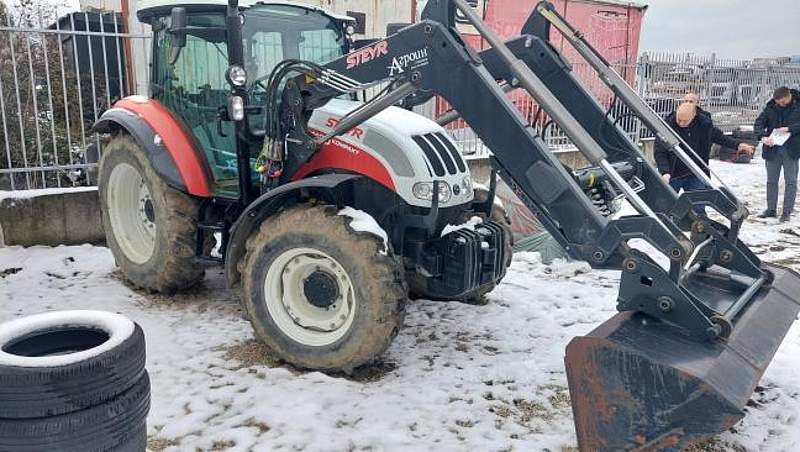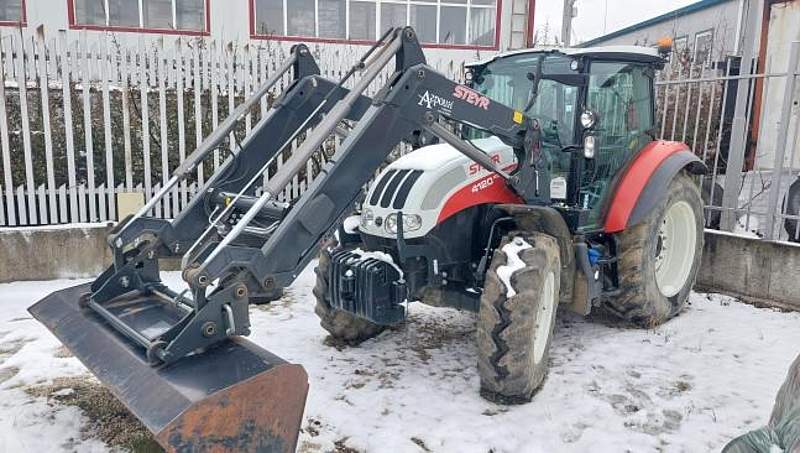 Трактор STEYR - модел 4120 Компакт, с рама № HLRK4120JNL302975, рег.№ А13023, заедно с Челен товарач Stoll - Германия, модел "FZ 39 0 23.1", с рама № 00007251150, рег. № А08645А.